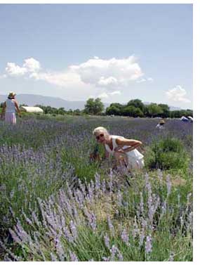 It was the middle of July and time for harvesting the lavender, a crop that was first planted in 1999. Since then the harvesting of this unique plant has become a yearly event, full of music, lectures, demonstrations, booths and socializing. The Ranch is thrown open to the public and thousands of people mill around the property, checking out the gardens and architecture and harvesting their own lavender, for about $10 per bunch.