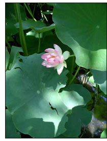 Prominent on the property is an enormous lotus pond whose flowers and leaves took on staggering proportions. Everything was lush and bursting with life.