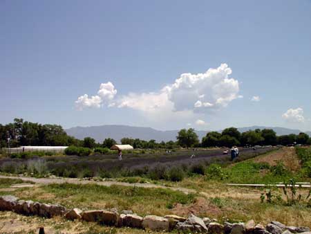 It was an amazing sight to look upon those fields. It’s only their flowers that are lavender in color and the flowers are tiny, but there are lots of them. So gazing upon those fields was like looking at a pointillism painting, where all the tiny flecks of lavender eventually turn into something remarkable in one’s head. And the site of all those people harvesting the lavender gave it the look of a painting of peasants by Van Gogh. The clouds seemed to be gathering into a storm and the mountains stood proudly in the distance. It was a perfect day.
