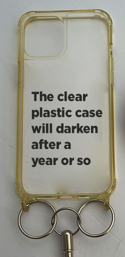 When I switched to plastic, my signal problems went away and the phone worked, much to everyone’s surprise and relief. Finally I found a case for my iPhone that solved my problems. It comes in a variety of sizes to fit every cellphone. It has two sturdy and balanced tabs at its base that allow me to connect myself to the phone. The snug plastic case protects it. Signals enter and leave my phone without interference. Since it has no screws, there is even less interference.