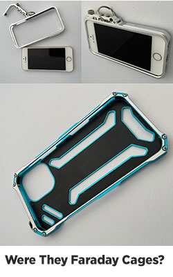 After extensive research, I found a robust cellphone cover on eBay which looked like something Darth Vader would carry. It had a hole in its bottom where I could attach a cord. Two metal plates were sandwiched together and secured with eight tiny metal screws. Although a hole was the right idea, the metal plates were all wrong, and it took me and my phone company (T Mobile) years to figure this out. In fact, the metal plates and screws were acting like what scientists call a Faraday cage that prevented phone signals from entering and leaving my phone. I kept blaming T-Mobile for my poor reception. They responded by sending me free signal boosters to scatter around my house.